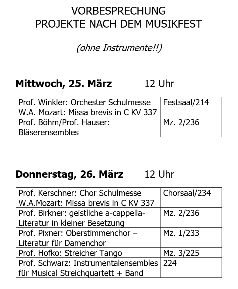 Chor- und Orchesterprojekte nach dem Musikfest